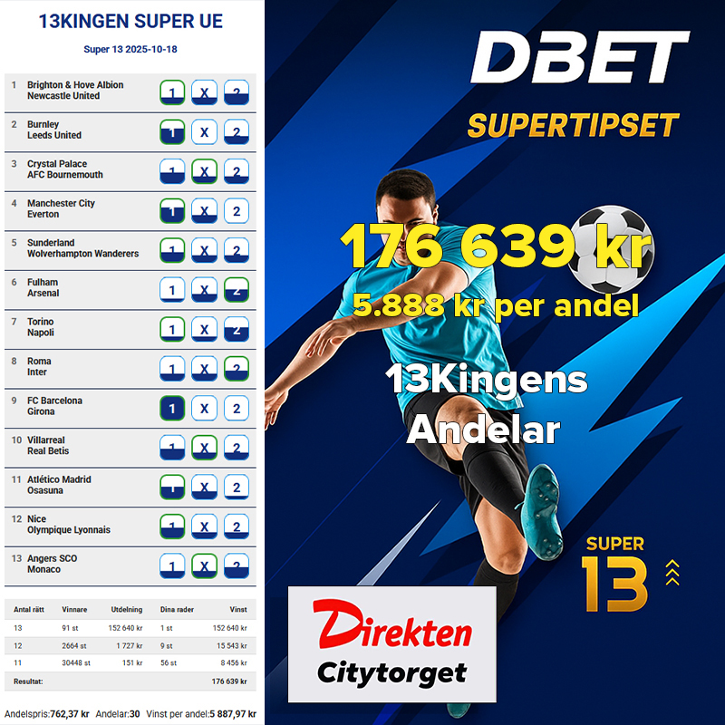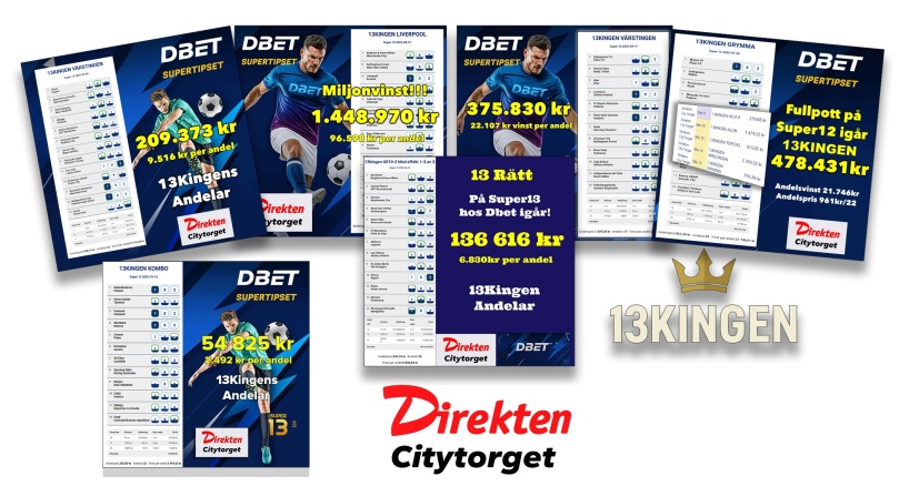 Andelarna finns under SUPERTIPSET och Direkten City Torget och sen 13KINGEN